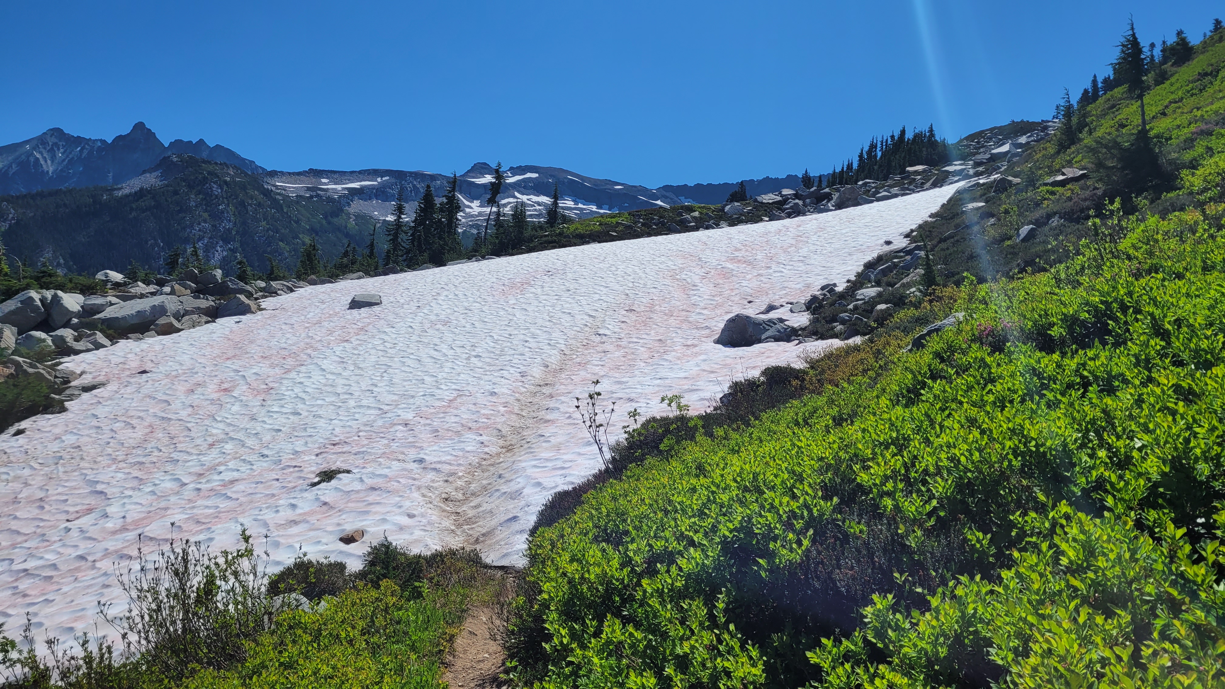 Das aufstehen ist wie immer lustig, der Tag geht aber deutlich geschmeidiger als gestern. Immerhin die Toilette lohnt sich. Die Schmerzen bewegen sich im Laufe des Tages von den Füßen Richtung Knie und Hüften was gut ist da es somit nichts ernstes ist. Desweiteren esse ich mittlerweile soviel das alle snacks die ich gern esse verbraucht sind und ich nur noch Essen habe das ich mir rein würge. Ich bin so hungrig, ich träume sogar schon von Trail essen das ich nicht habe. 5 Tage ohne Essen direkt am Anfang sind echt hart für den Kopf und Körper.