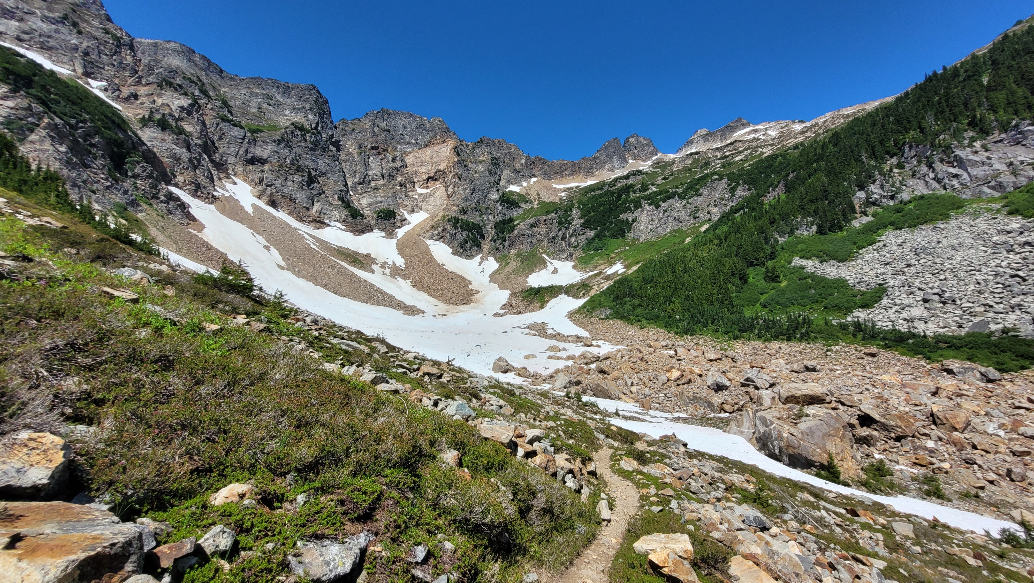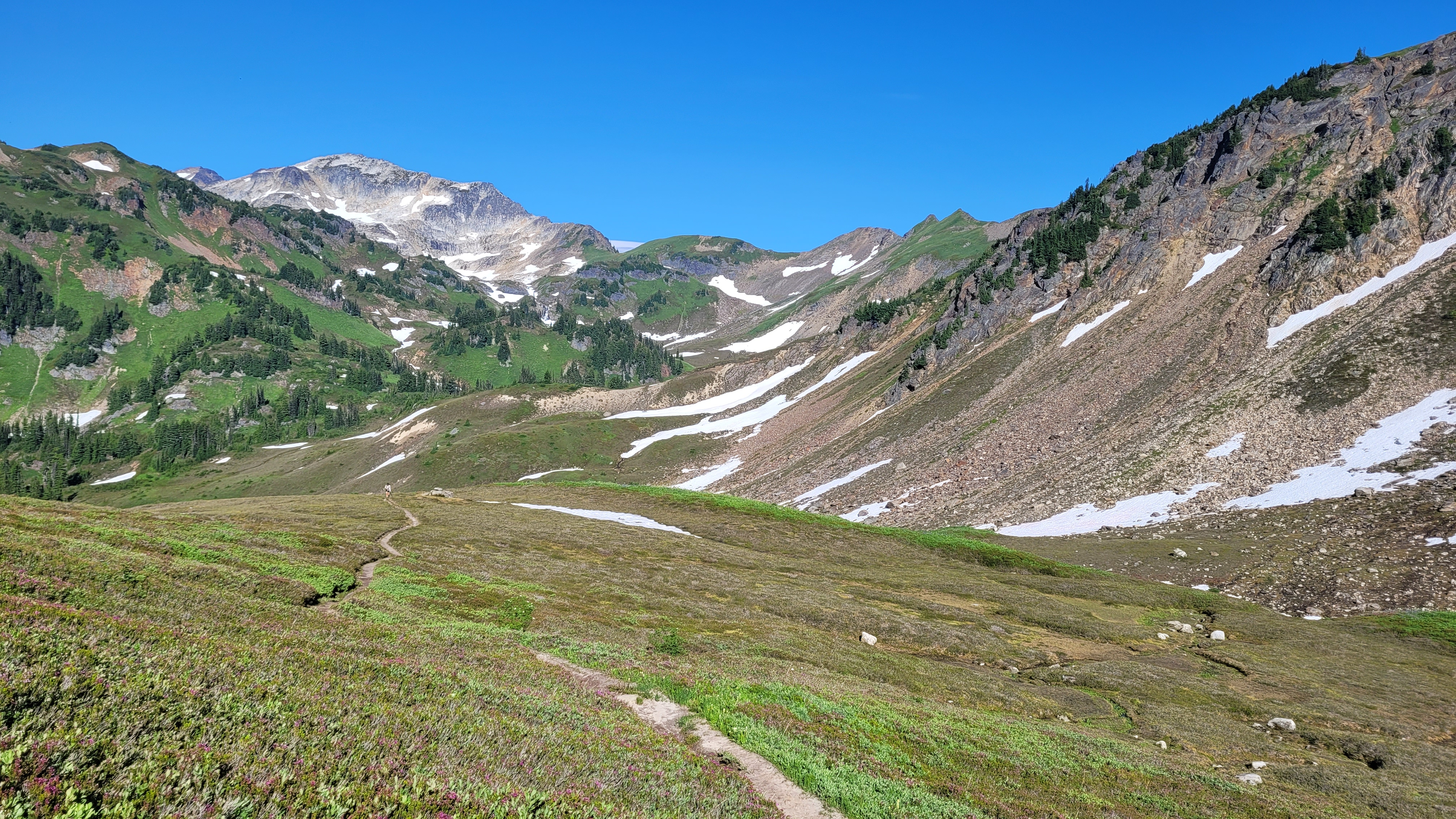 Die Szenerie ist nach 2 harten Pässen Wahnsinn. Es geht teilweise steil runter und jeder Schritt muss sitzen. Letztes Mal war es hier leider meist bewölkt und ich hab das meiste verpasst.