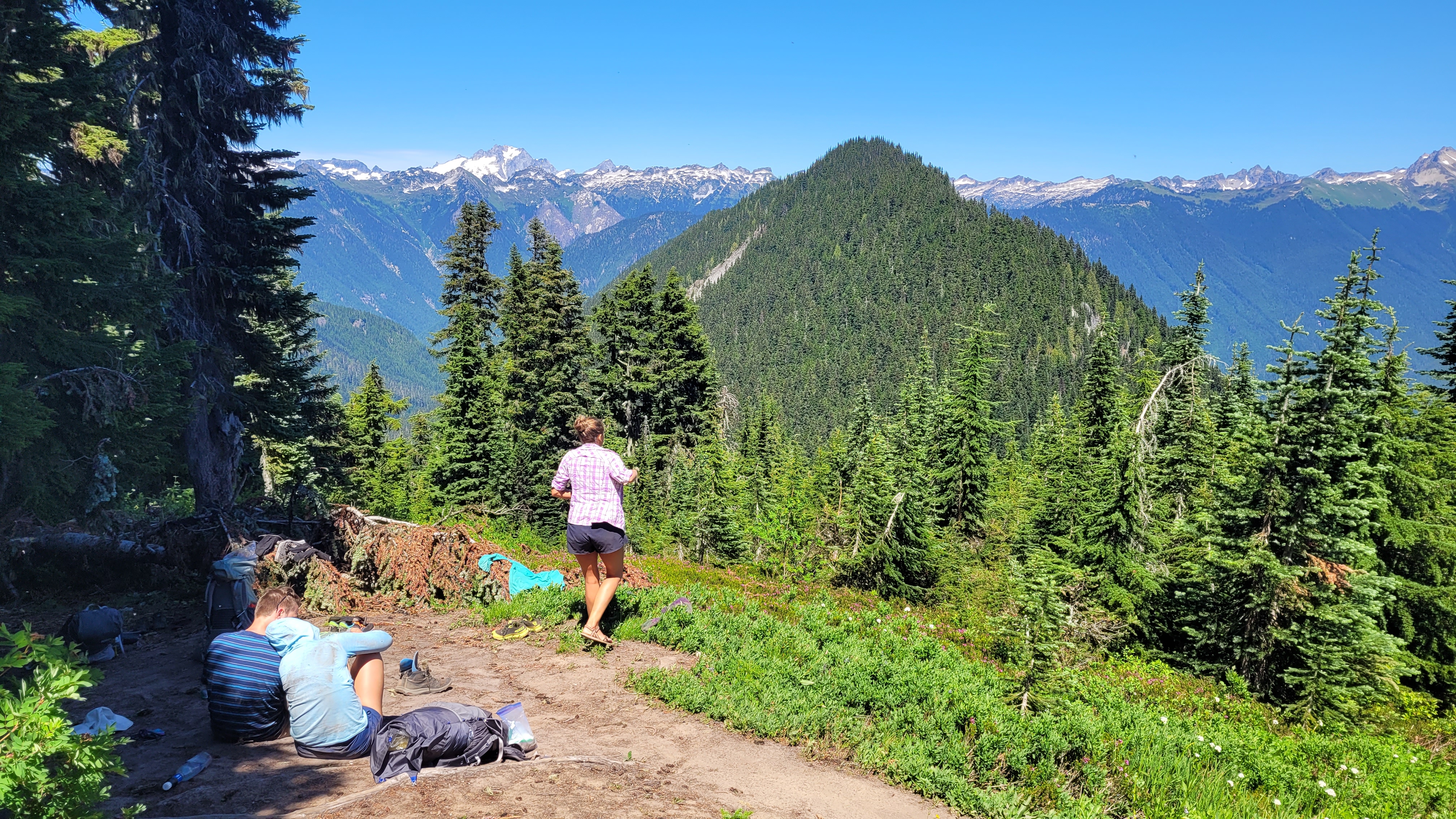 Das besondere an dieser Sektion ist man kann zwischendurch nicht raus, es gibt nur durchziehen oder zurück laufen was keine Option ist. Nach einem ewig langen Aufstieg durch Busch wird die Landschaft dann deutlich besser. Hier trifft man auch auf andere die Mittag machen. Es ist warm und die Sonne scheint als würde sie dafür bezahlt. Keine einzige Wolke… Nach einem schönen Stück oben auf dem Berg ging es dann Stunden steil runter, über einer Brücke und auf der anderen Seite wieder hoch. Was für ein Tag. Heute hat der Hunger langsam angefangen und ich esse nun schon fast 5000 Kalorien am Tag.