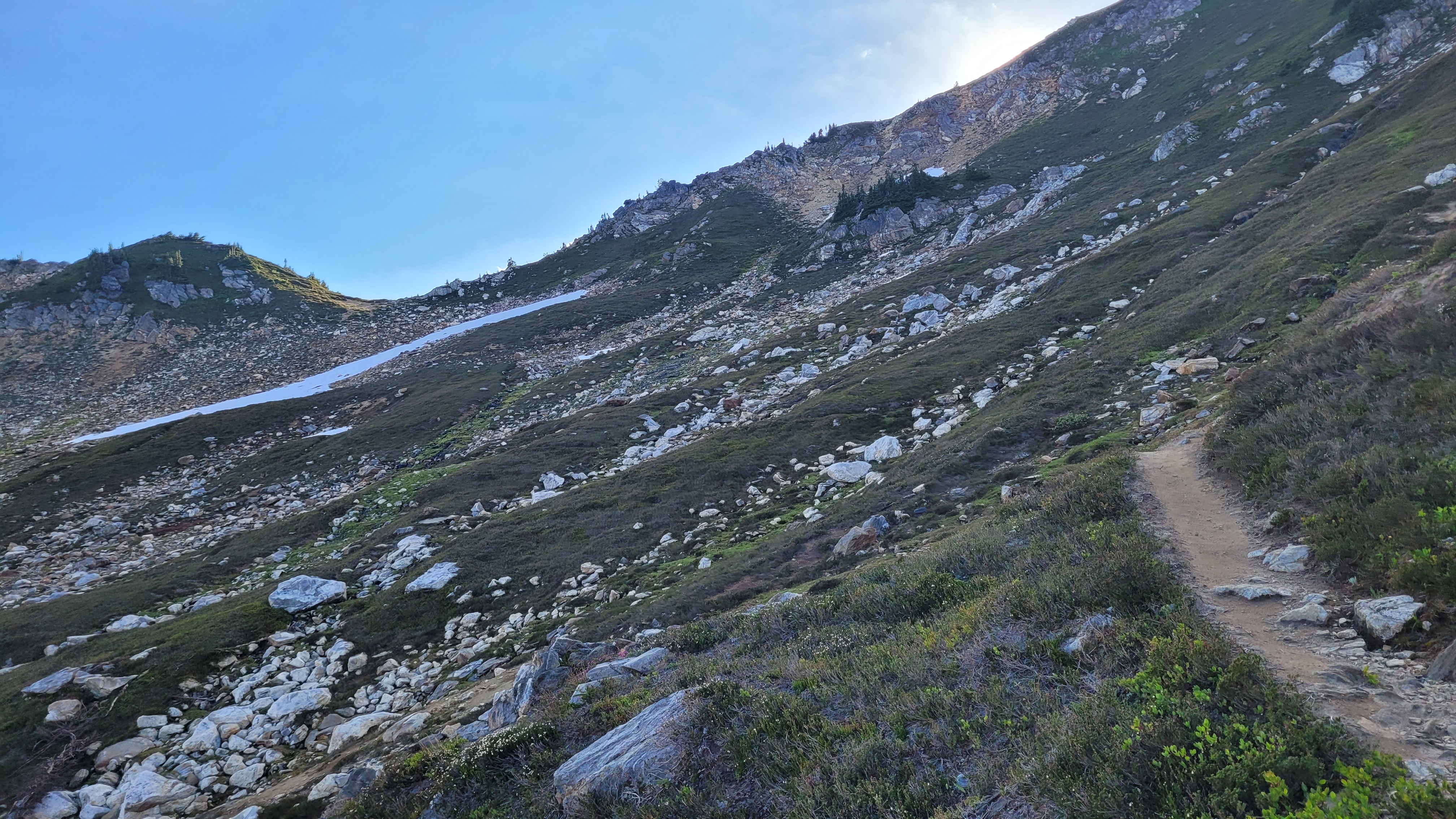 Ich beschließe heute durchzuziehen um für morgen nah an die Stadt zu kommen. Früh ist es angenehm bewölkt, wird dann aber wie immer warm. Landschaft und Trail sind trotz 1800 Höhen Metern einfach zu bewältigen. An Tag 6 schon 40km war überhaupt nicht mein Plan.