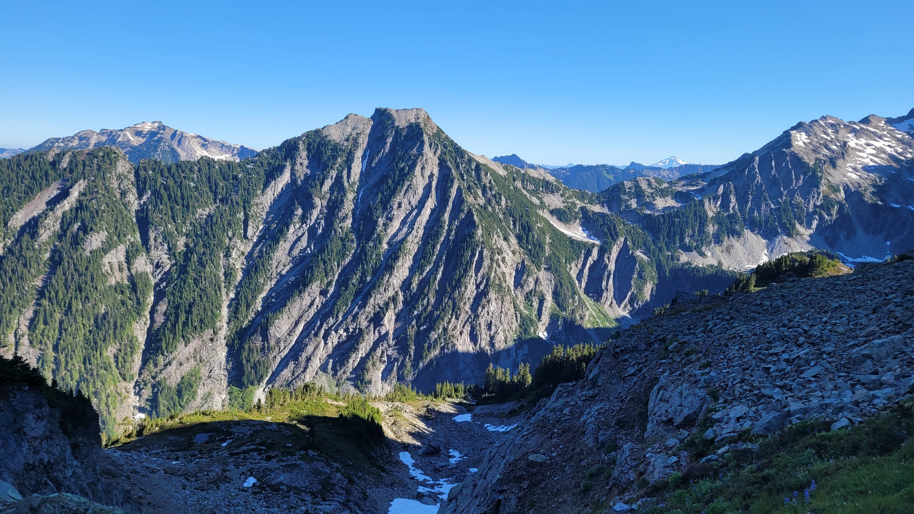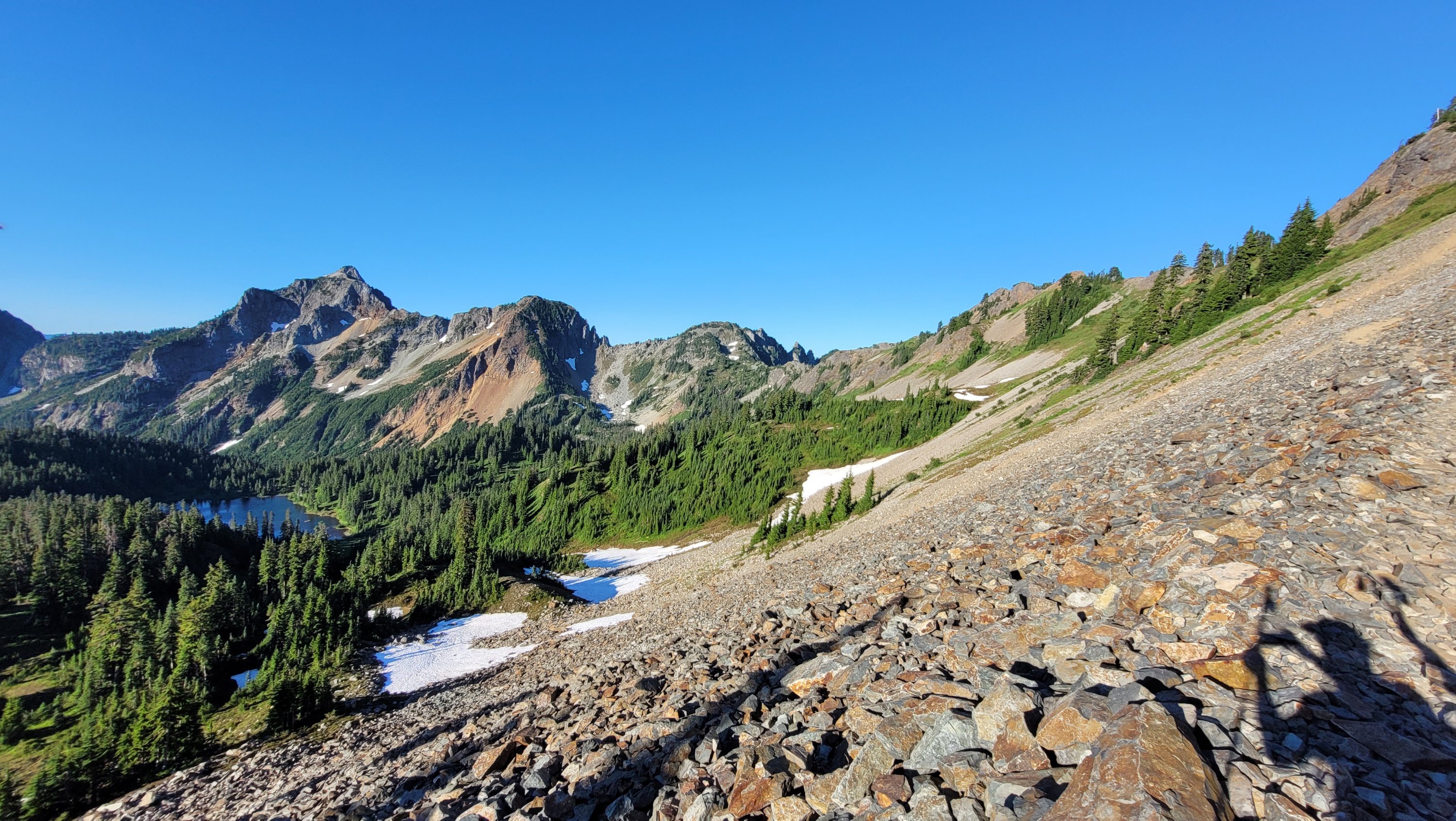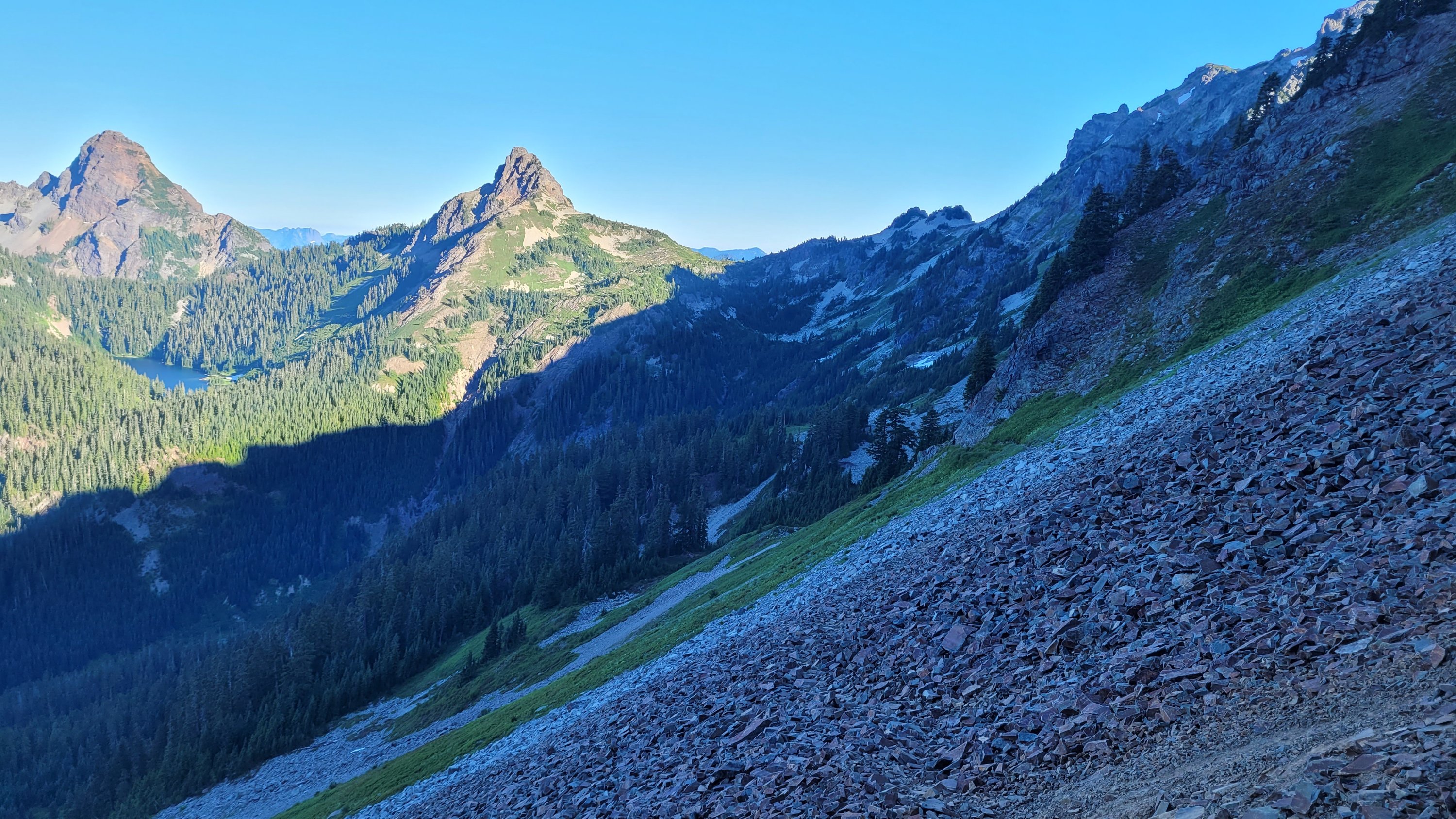Zurück zu Steven’s Pass haben wir das geliehene Auto an seinen Platz zurück getan und sogar voll getankt. Das Vertrauen uns sein Auto zu überlassen ist wirklich beeindruckend. Auf dem Trail ging es steil bergauf, dank Musik und einem kühlen Nachmittag bin ich deutlich weiter als geplant und vor den anderen.