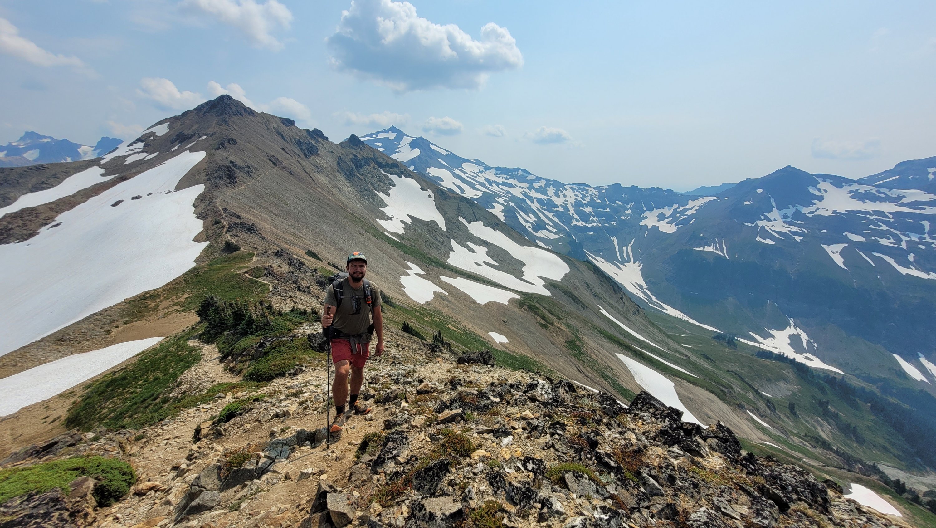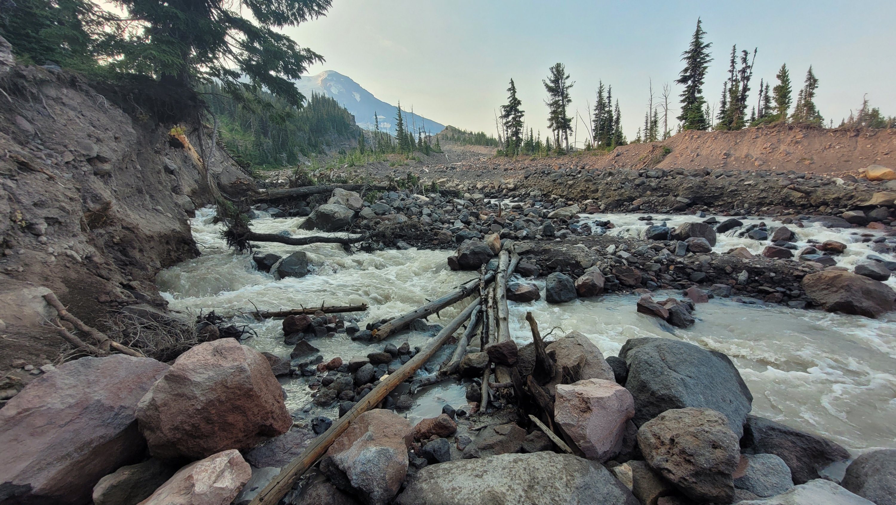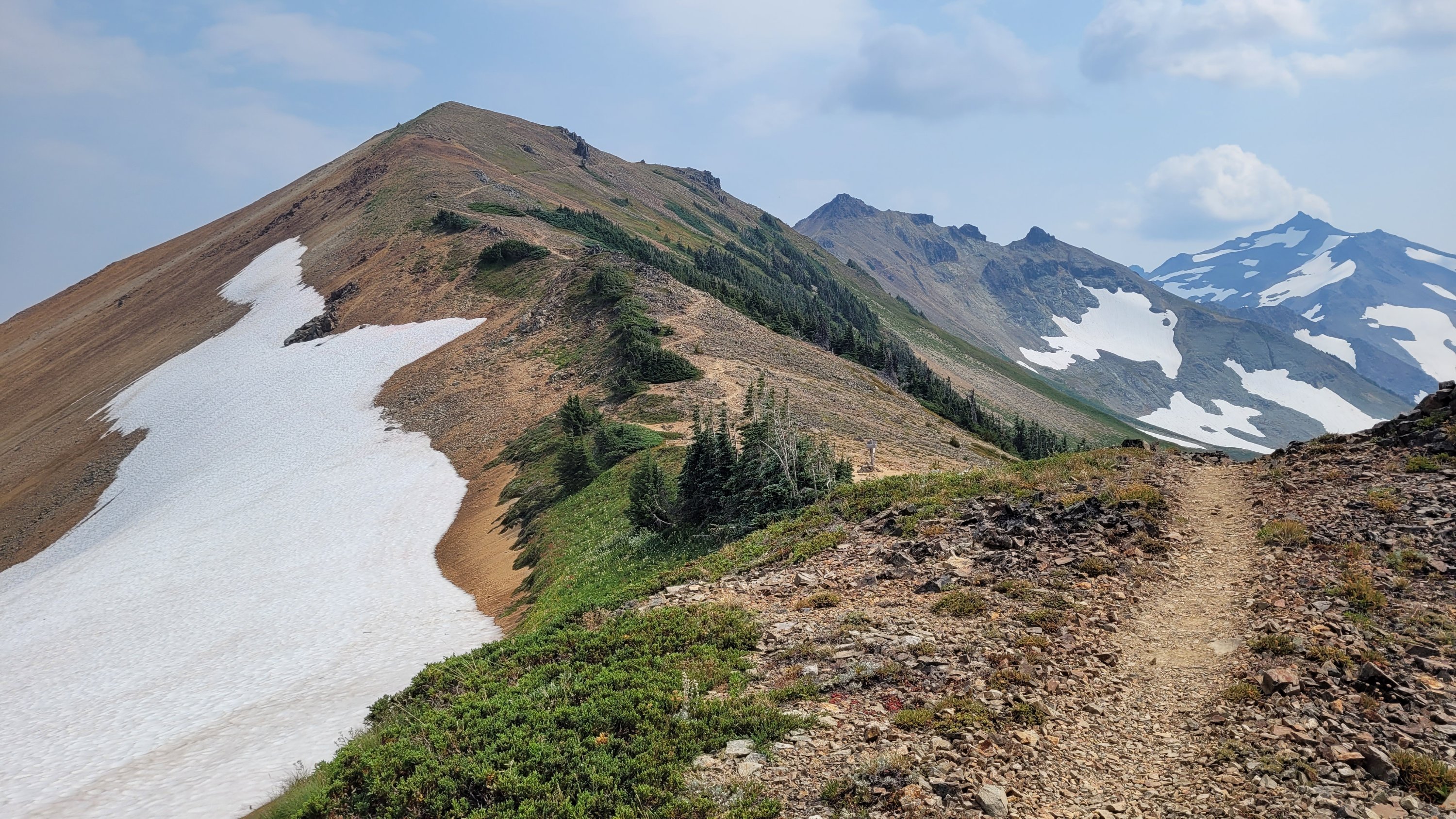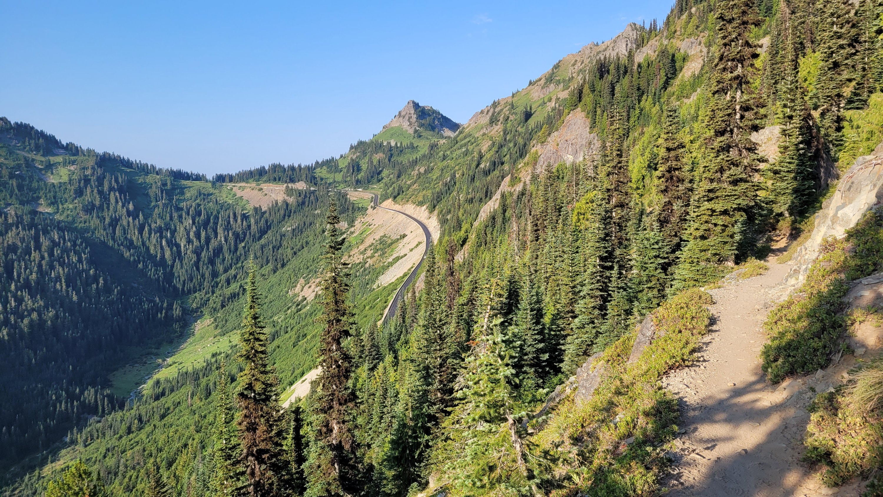 Es war so heiß, selbst nachts hab ich meinen Schlafsack nicht mal berührt. Früh nachdem man den Highway 27 überquert hat kam noch genau ein See in den ich fix springen konnte, danach ging das Unheil los. Mücken die einfach nicht enden, dazu Hitze und feuchtes Klima. Man hatte ein paar nette Aussichten auf Mt Rainier, den höchsten Berg von Washington. Nach endlosen Meilen durch eintönige Landschaft und Mücken musste ich sogar in meinem Zelt essen.