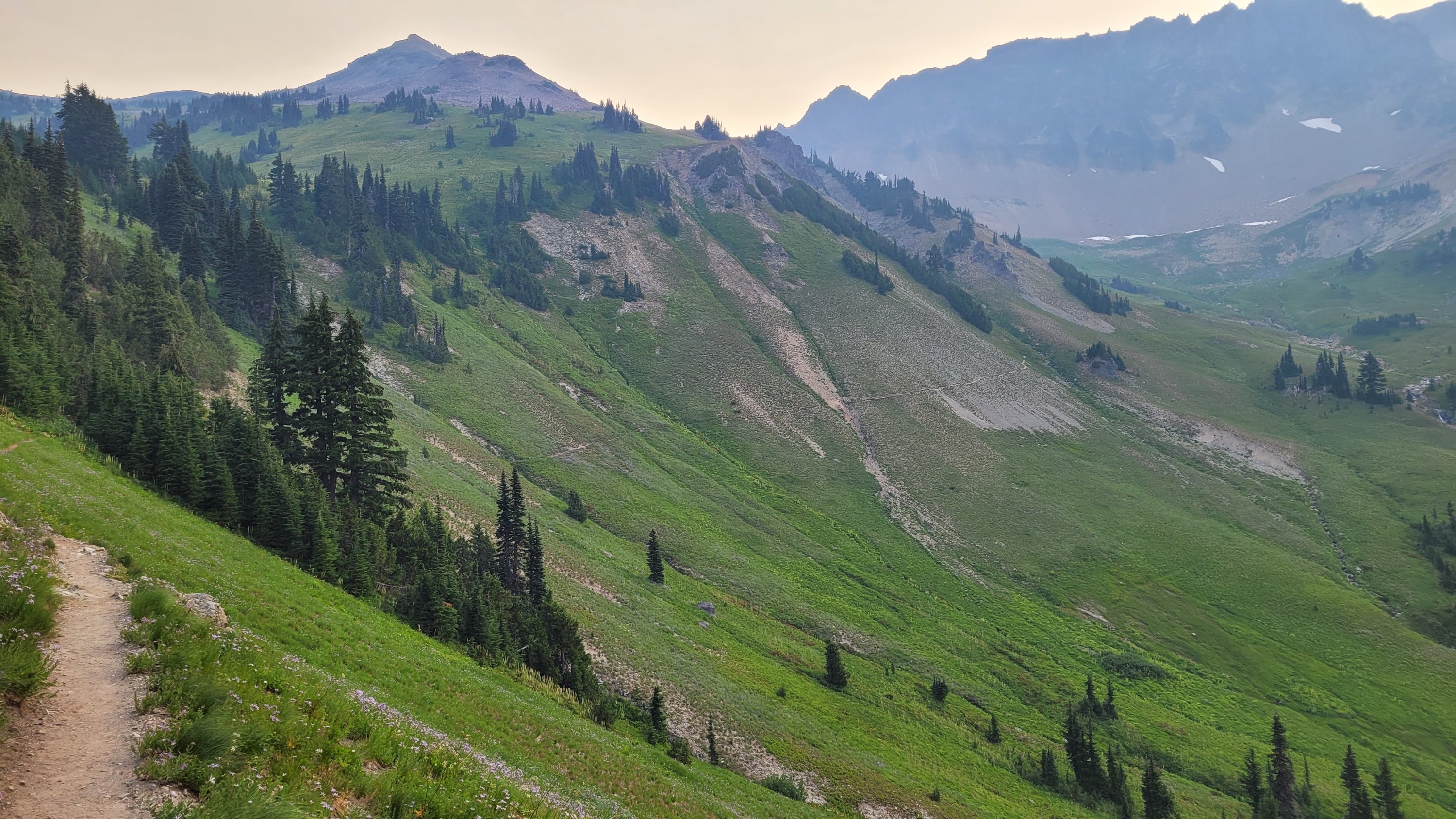 Der Start in den Tag war bereits vor 5 aufgrund der Hitze und da ich mindestens 26 Meilen laufen wollte. Nach einem wunderschönen Teil ging es ins Tal das wie Urwald war. Zudem war der komplette Tag voller Insekten womit ich keinen wirkliche Pause hatte und bereits gegen 4 am Zeltplatz war. Ich hatte vor weiter zu gehen hab aber wegen der massiven Menge an fleischfressenden Fliegen das Zelt aufgebaut.