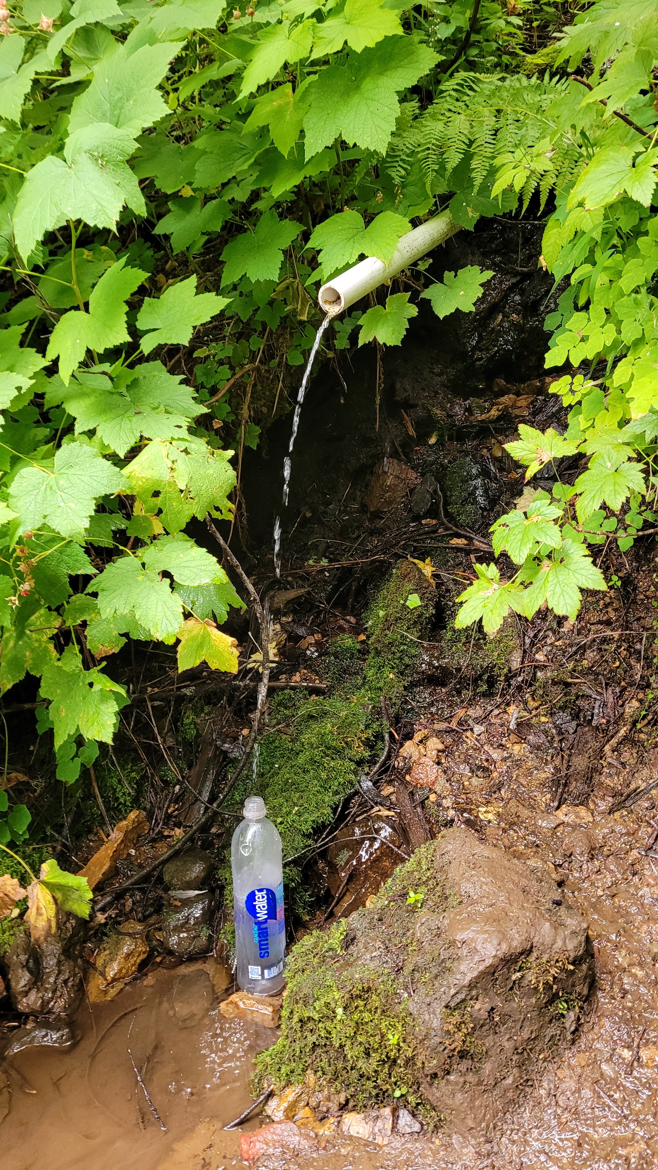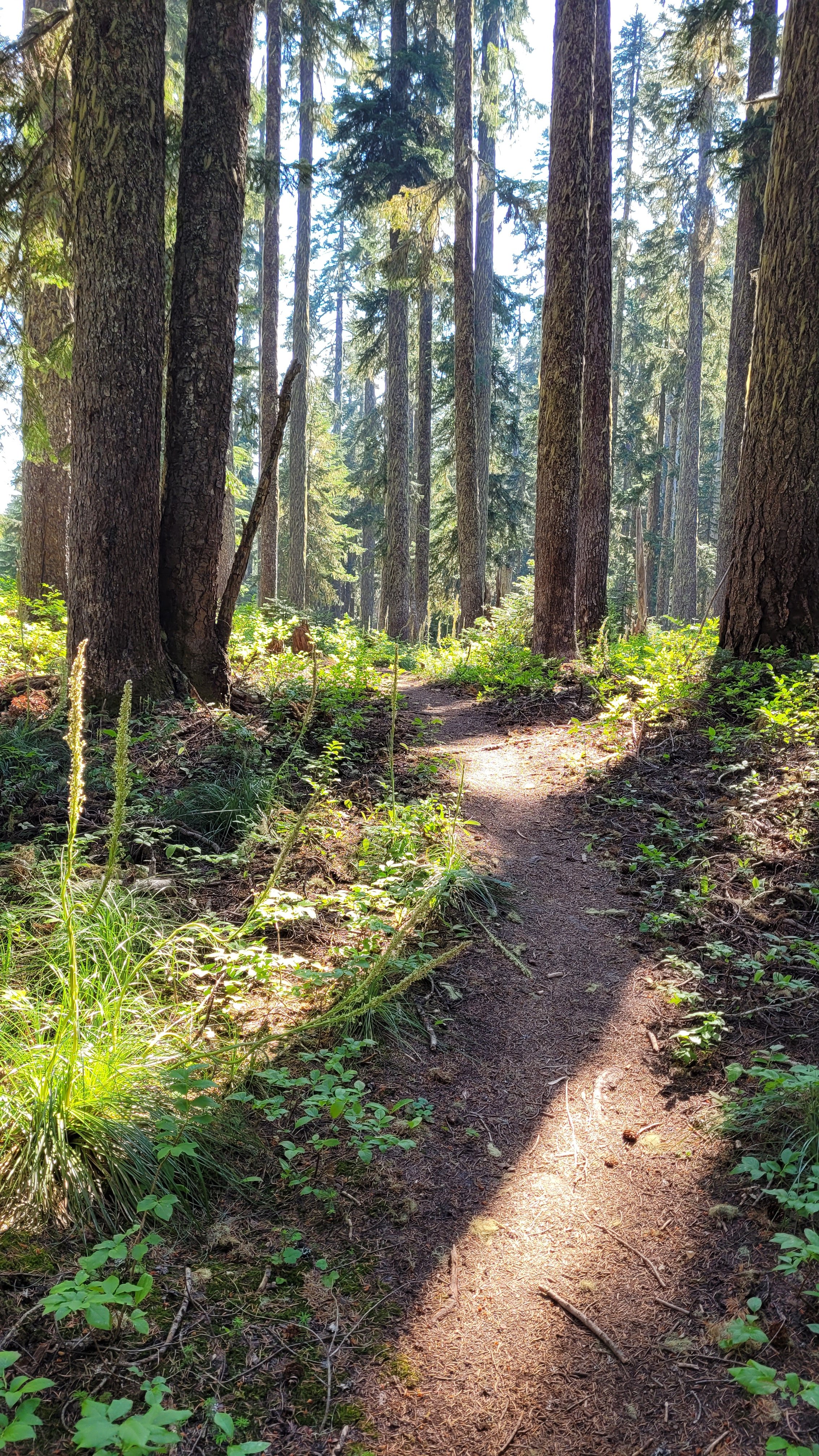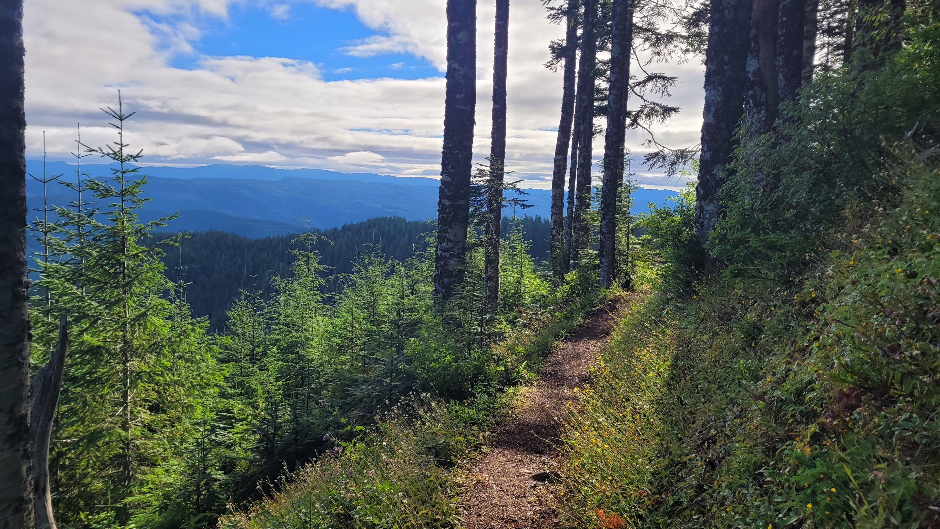 Früh regnet es dann endlich mal leicht und umso höher ich auf den nächsten Berg komme umso nebliger wird es. Absolut notwendig so trocken wie es hier ist. Die ersten 10 Meilen gehen ok also beschließe ich heute die Backen zusammen zu kneifen und wenigstens 26 Meilen zu laufen da es die letzten paar Stunden kein Wasser geben wird. Der Wald ist wie ein Dschungel und beim letzten Fluss gehe ich nochmal ausgiebig baden. Durch meine ungünstige Haltung beim Laufen und die mittlerweile durchgelaufenen Schuhe hab ich nun noch leichte Druckstellen am rechten Fuß, es geht immer weiter 😅