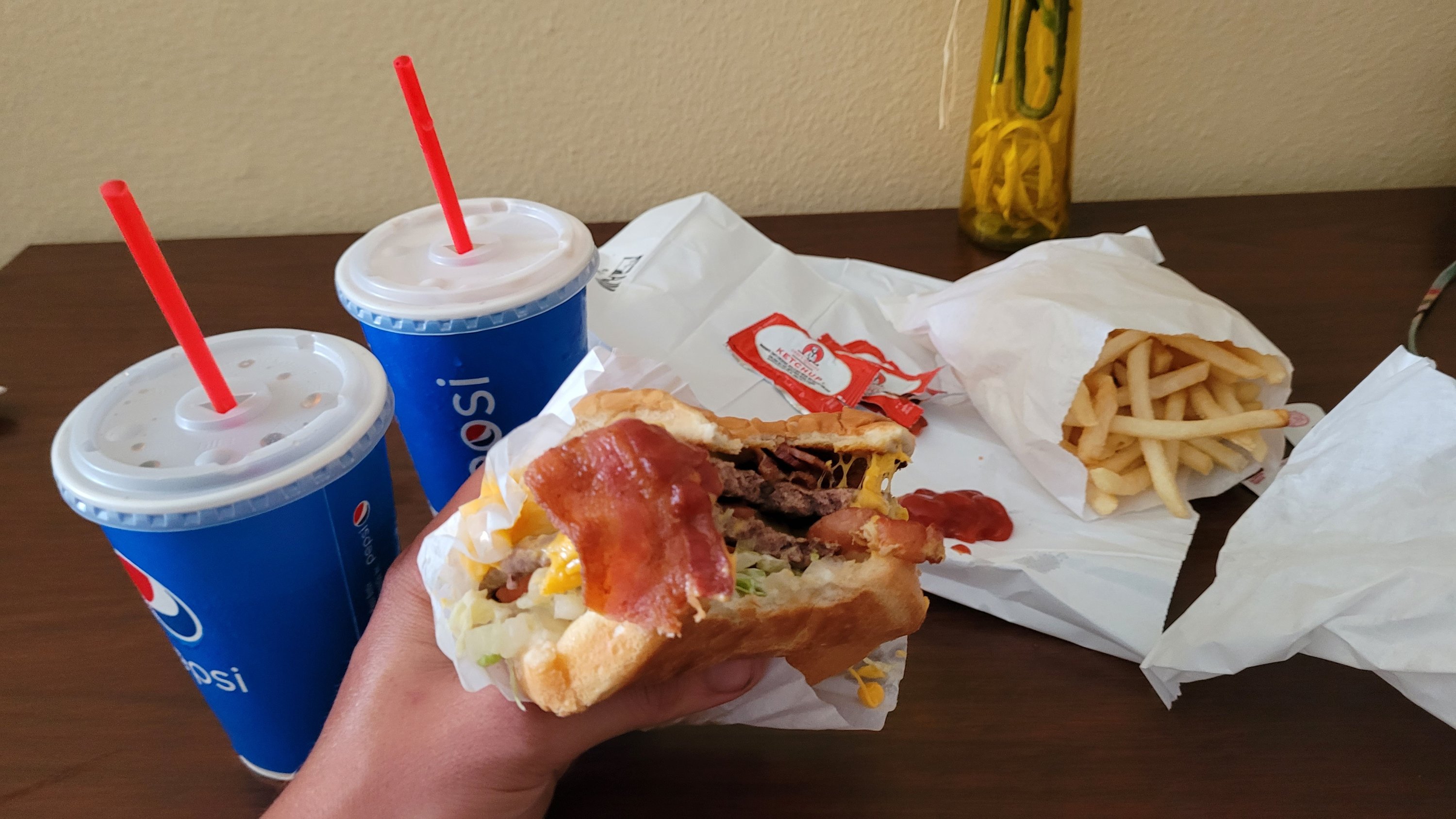 Heute geht’s in die Stadt, nichts kann mich davon abhalten. Ich trinke und esse wie immer nur notdürftig um am Leben zu bleiben, spare mir den Appetit aber für Burger und Milkshake. Man kann den Colombia river schon 5 Stunden bevor man unten ist sehen was leicht demotivierend ist. Trotz Reibung, Hunger und Müdigkeit mache ich keine Pause. Einzige Ausnahme sind ein paar Brombeeren und Himbeeren die köstlich sind und direkt auf Augenhöhe wachsen.