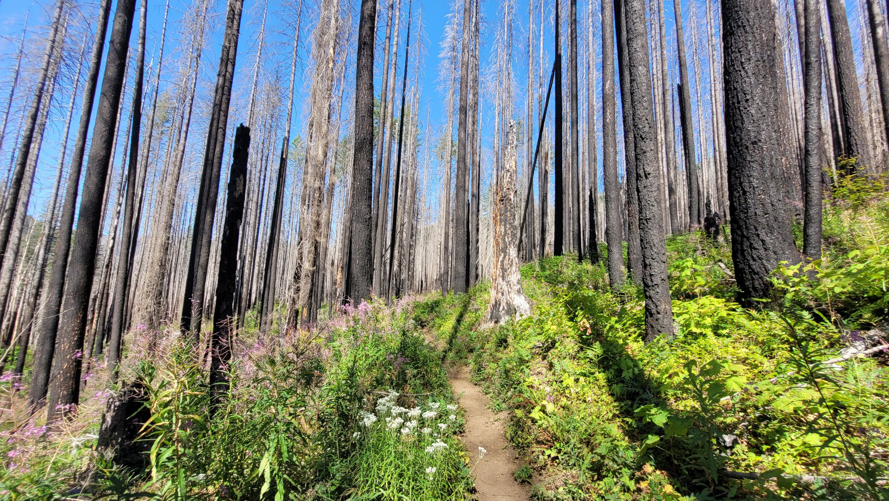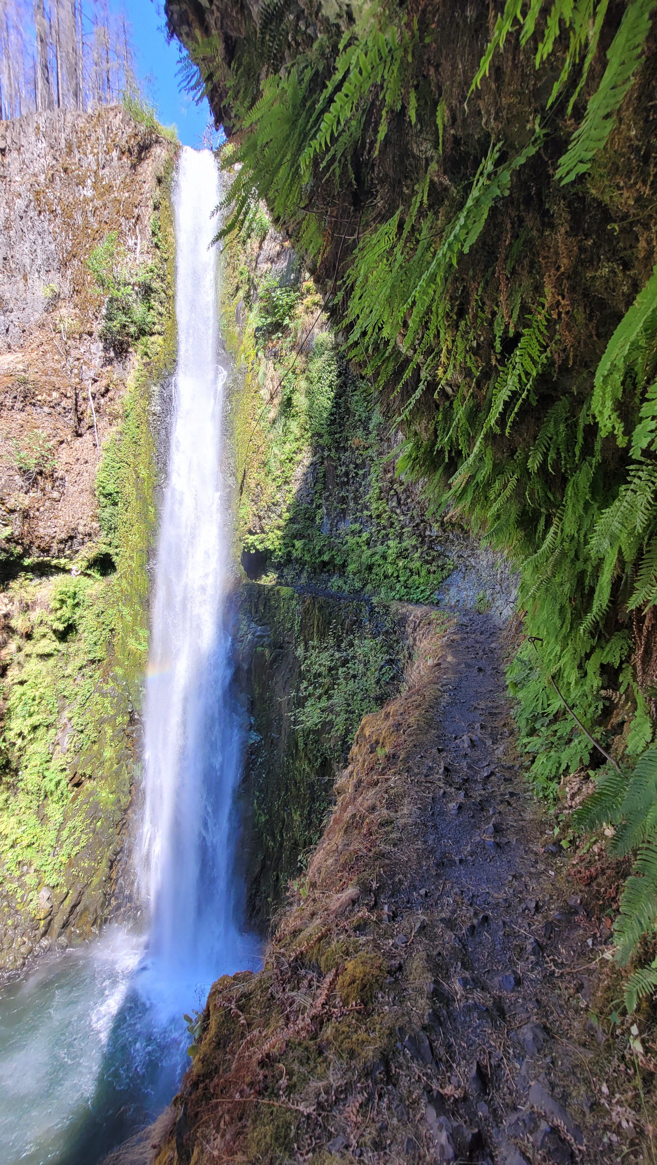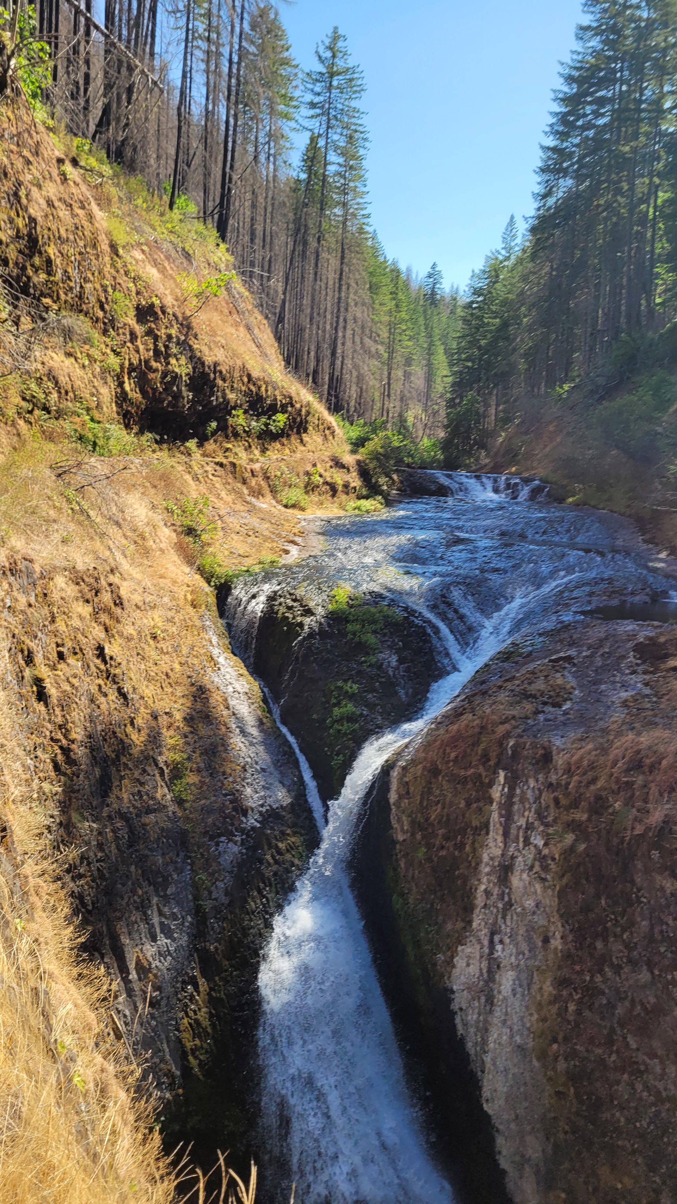 Heute ging es kurz vor Mittag gemütlich los. Da Cascade locks auf Meeresspiegel liegt größtenteils bergauf. Ich habe einen alternativ Weg gewählt der einen an den Tunnel falls vorbei führt. Man läuft hinter dem Wasserfall. Nach endlosen bergauf in verbranntem Gebiet fast ohne Sonnenschutz habe ich bei einer kleinen Quelle Lager aufgeschlagen.
