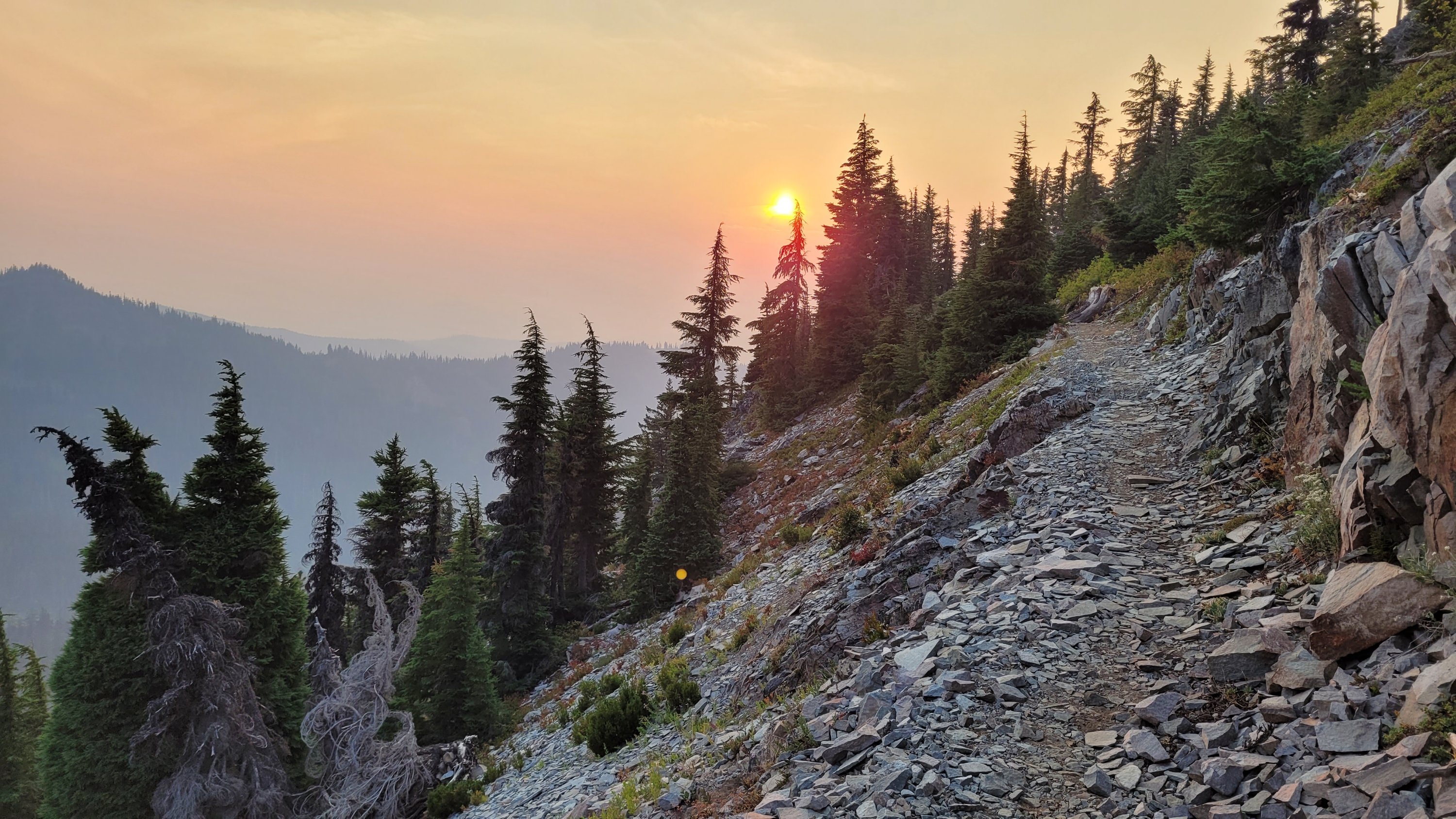 Es wird früh mittlerweile kaum vor 6 hell was den Tag deutlich verkürzt, dazu kann man zwischen 12 und 16 Uhr kaum in die Sonne weil es unerträglich ist. Selbst 8-10L Wasser am Tag fühlen sich zu wenig an. Mehr kann ich physikalisch aber nicht trinken. Heute dreht der Wind und es kommt richtig dicker Rauch. Etwas wie am Lagerfeuer sitzen.