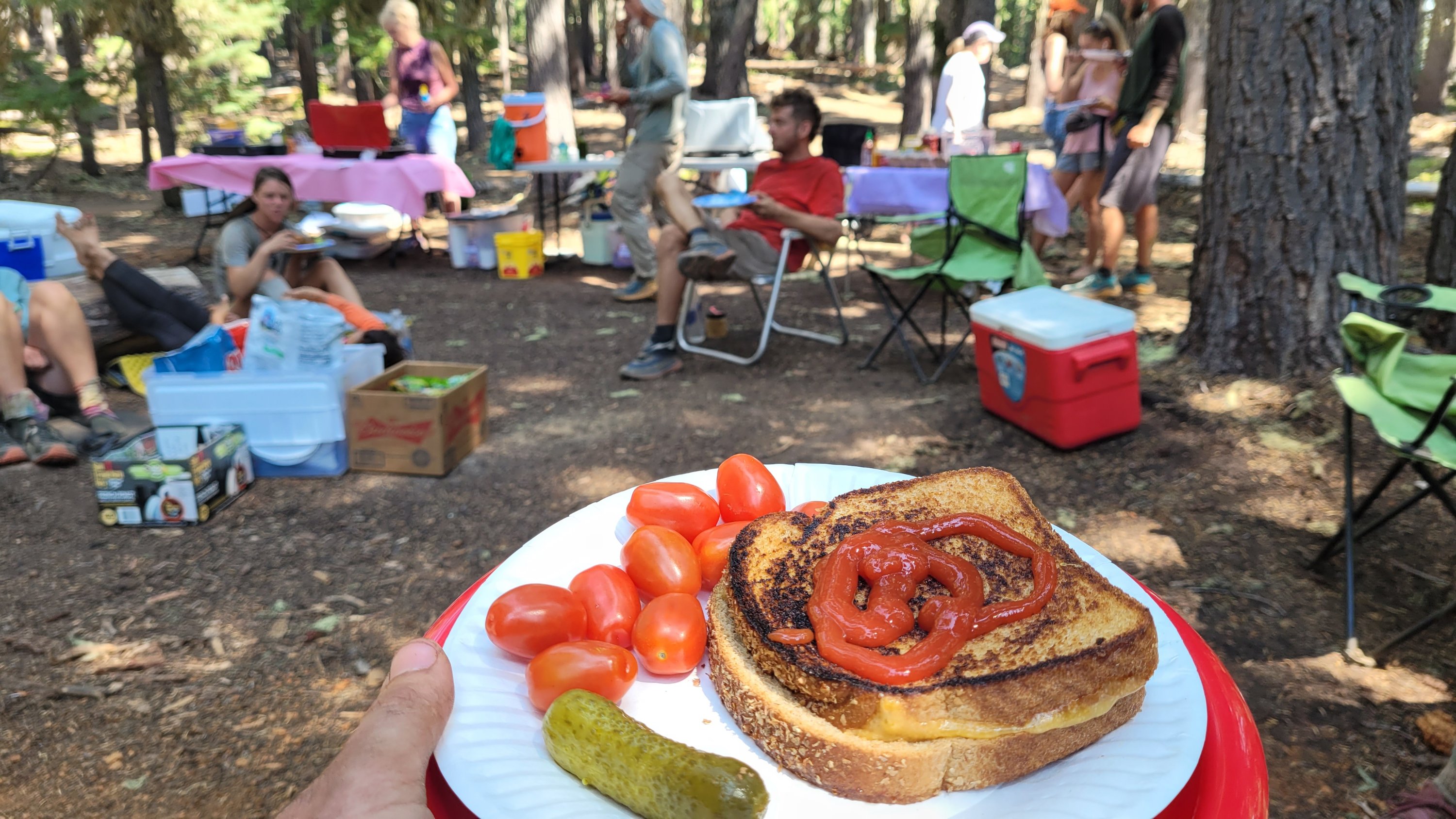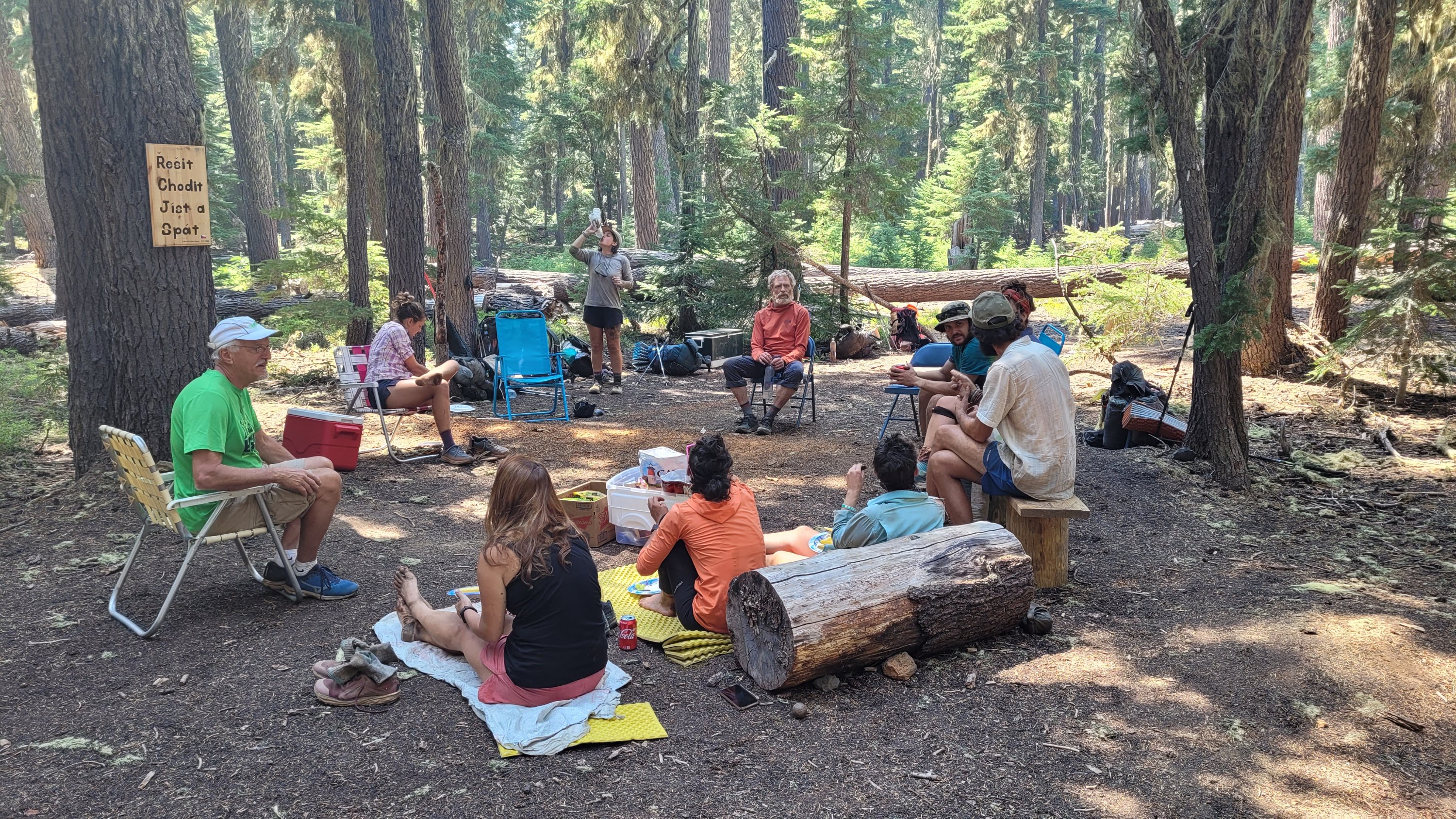 Früh dann die Überraschung, der Himmel ist relativ klar! Nachdem ich wieder mal warmes See Wasser über endlose Berge tragen musste kam dann sogenannte Trail magic. Leute hier ins nirgendwo fahren um hiker mit Essen und trinken zu versorgen. Witziger Zufall, genau an derselben Stelle hatte ich Trail magic vor 3 Jahren, von genau denselben Leuten und es gab genau dasselbe Essen. Desweiteren war ich mit deren Sohn eine Weile auf dem Continental Divide Trail unterwegs. Eine kleine Welt. Heute war ich ambitioniert weit zu laufen aber nach 5 Stunden voller Käse Sandwiches, hot dogs, Bier etc bin ich noch 2 Stunden zum nächsten See gerollt und hatte ihn komplett für mich allein.