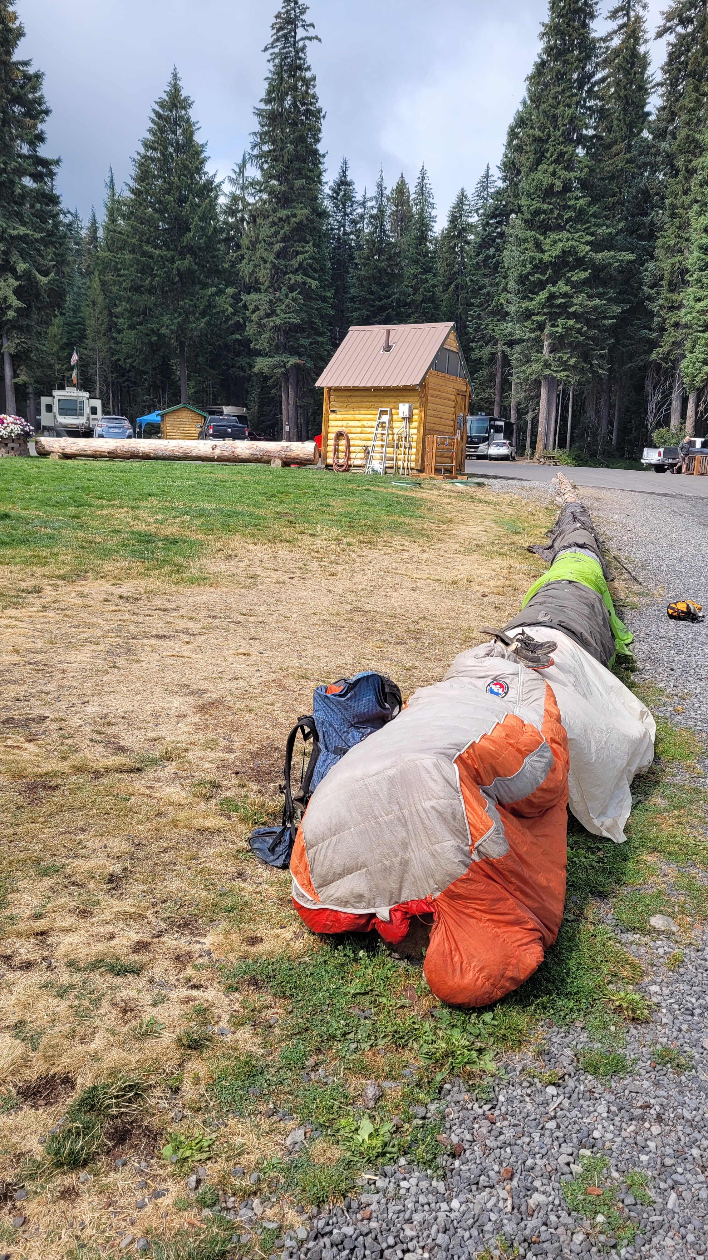 Heute wollte ich früh los aber es, hat endlich mal geregnet. Desweiteren hat es sich massiv abgekühlt. Von 18 Grad nachts auf 5 Grad. Herrlich. Ich warte gemütlich bis der Regen weniger wird, packe und laufe nach Shelter Cove, einem kleinen Laden an einem See. Dieser ist bestens auf die Maßen an Hikern eingestellt. Da ich zurzeit 50+ Leute täglich treffe die nach Norden gehen ist hier überall viel los. In ein paar Tagen sind diese alle durch und der Trail gehört ganz mir. Den restlichen Tag gab es eine Familien Pizza und Bier. Leider ist es, tagsüber auch sehr kalt. Warum kann es nicht mal warm sein wenn man kalte Getränke hat…