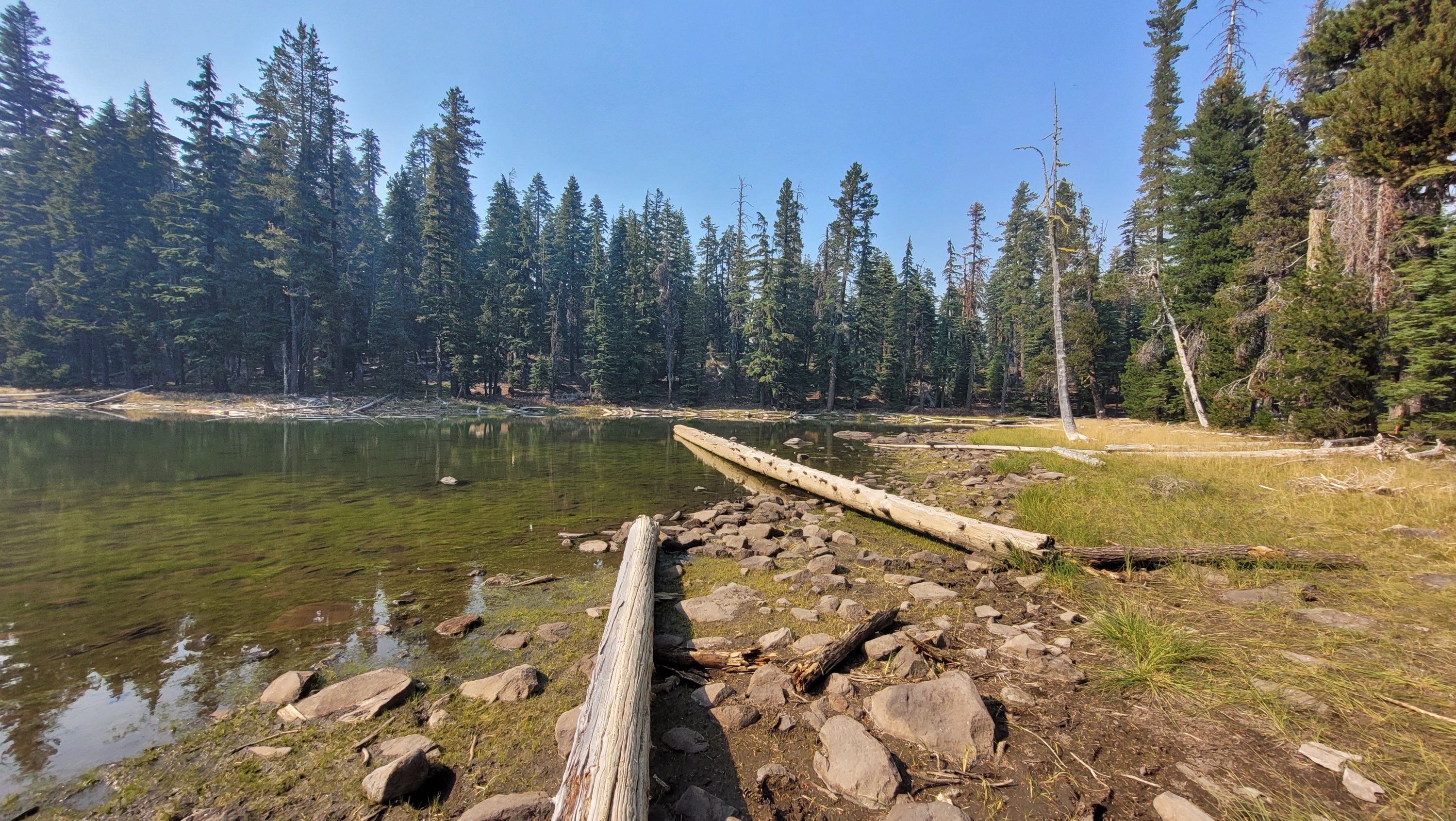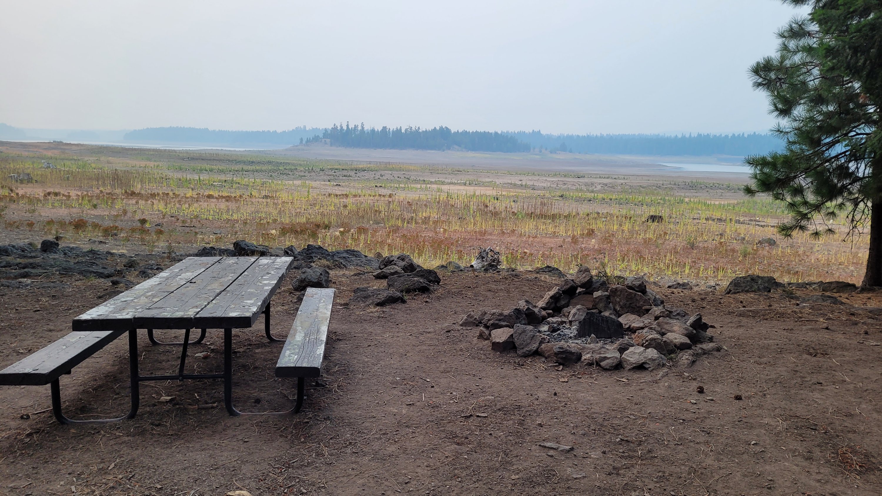 In der Sektion gibt es normalerweise viele Bäche aber durch das trockene und viel zu warme Jahr sind selbst zuverlässige Wasserstellen ausgetrocknet. So kommt es das wir zu einer Wasserpumpe mussten die angeblich defekt war aber mit der richtigen Technik ging es dann doch. Abends sind wir an einem verlassenen Zeltplatz vorbei gekommen. Dieser hat eine top Lage und auf der Karte liegt er direkt an einem See. Vor Ort sieht man dann erstmal das der See bis auf Pfützen komplett ausgetrocknet ist. Verrückt. Deswegen ist wohl auch niemand hier. Alle sind zurzeit müde, das liegt wohl auch an dem Mangel an Pausen Tagen. Selbst die relativ entspannten 40km Tage sind anstrengend und der Körper müde.