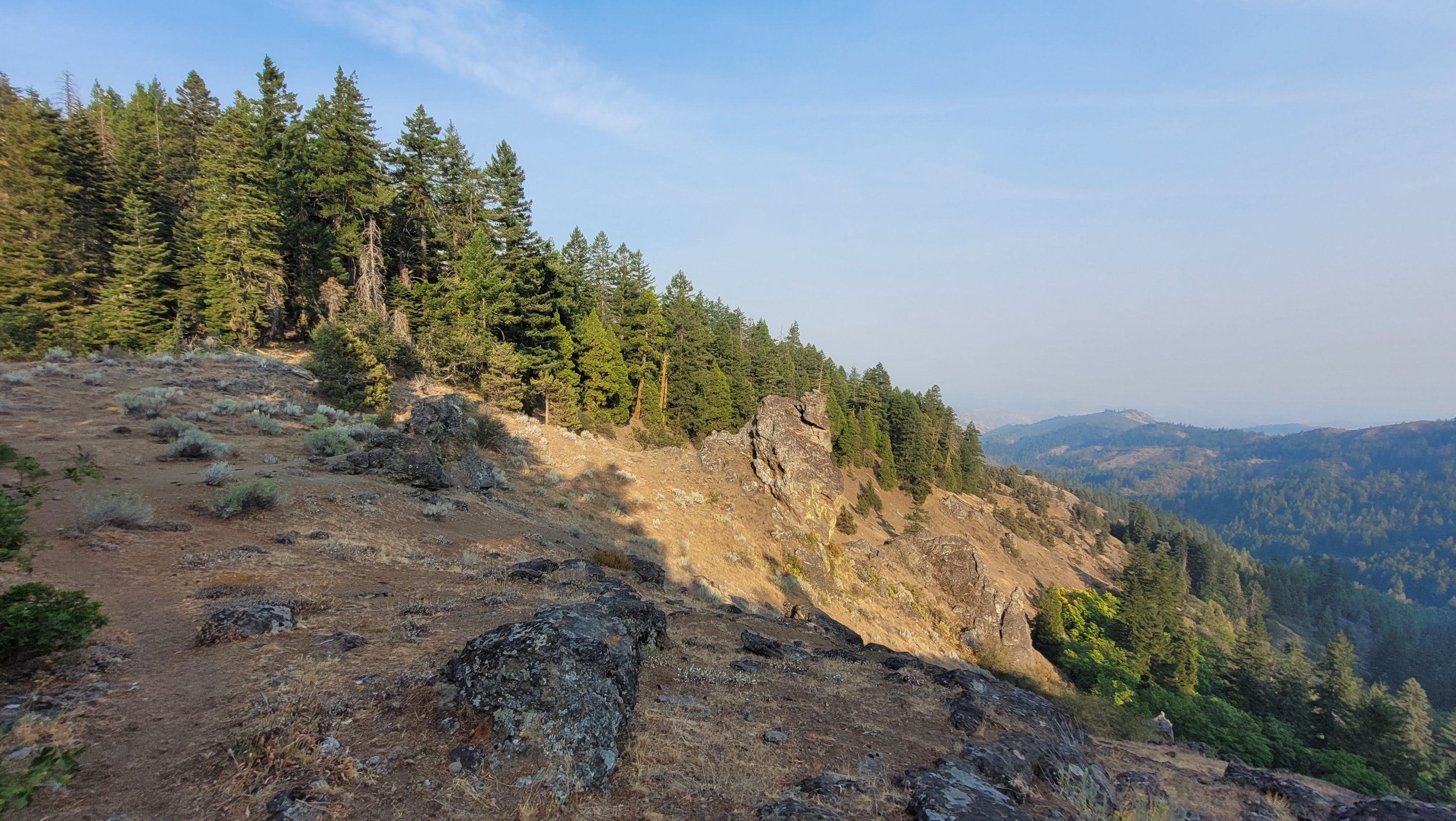 Da alle früh hungrig sind beschließen wir uns von einem kleinen Restaurant abholen zu lassen, haben dort 2 Std Frühstück und zurück zum Trail. Nach einem doppelten Frühstück mit viel Kaffee und Cola fühlt sich die Welt gleich deutlich besser an. Die Landschaft heute sieht eher wie Wüste aus und die Fernsicht ist durch den Rauch leider nicht da. Heute ist der letzte volle Tag in Oregon da südlich von Ashland alles wegen Feuer gesperrt ist.