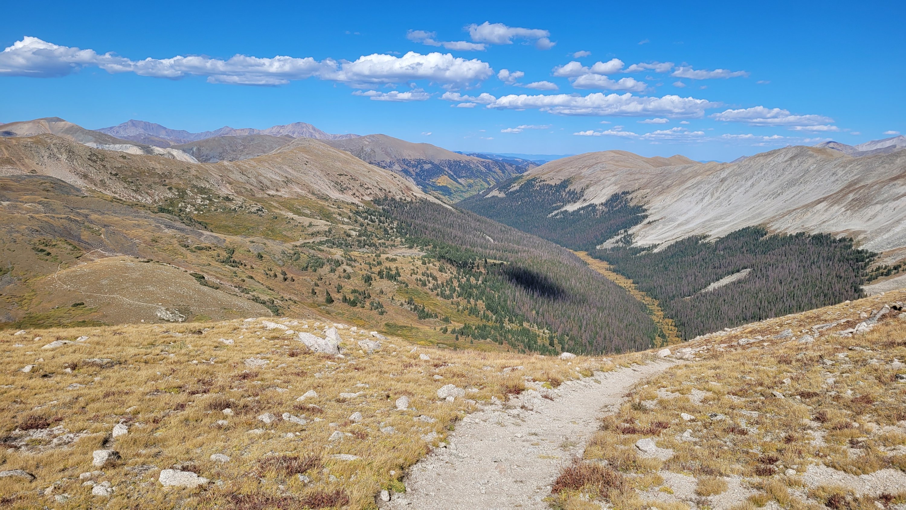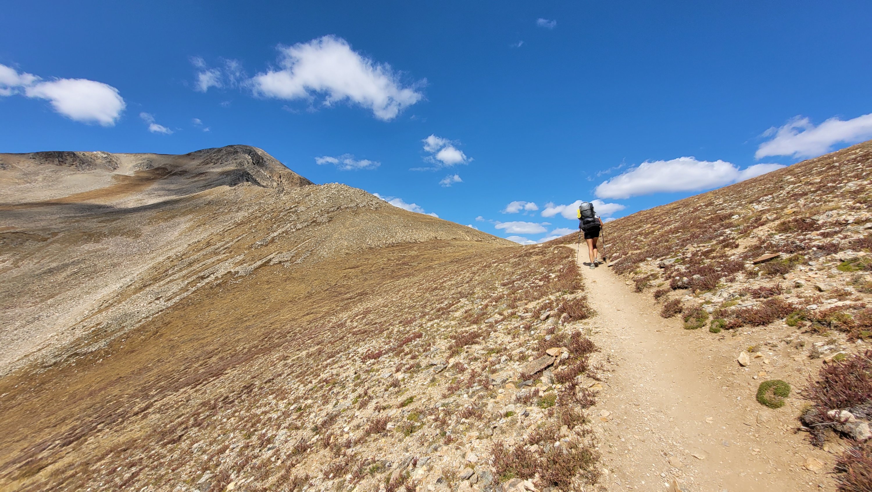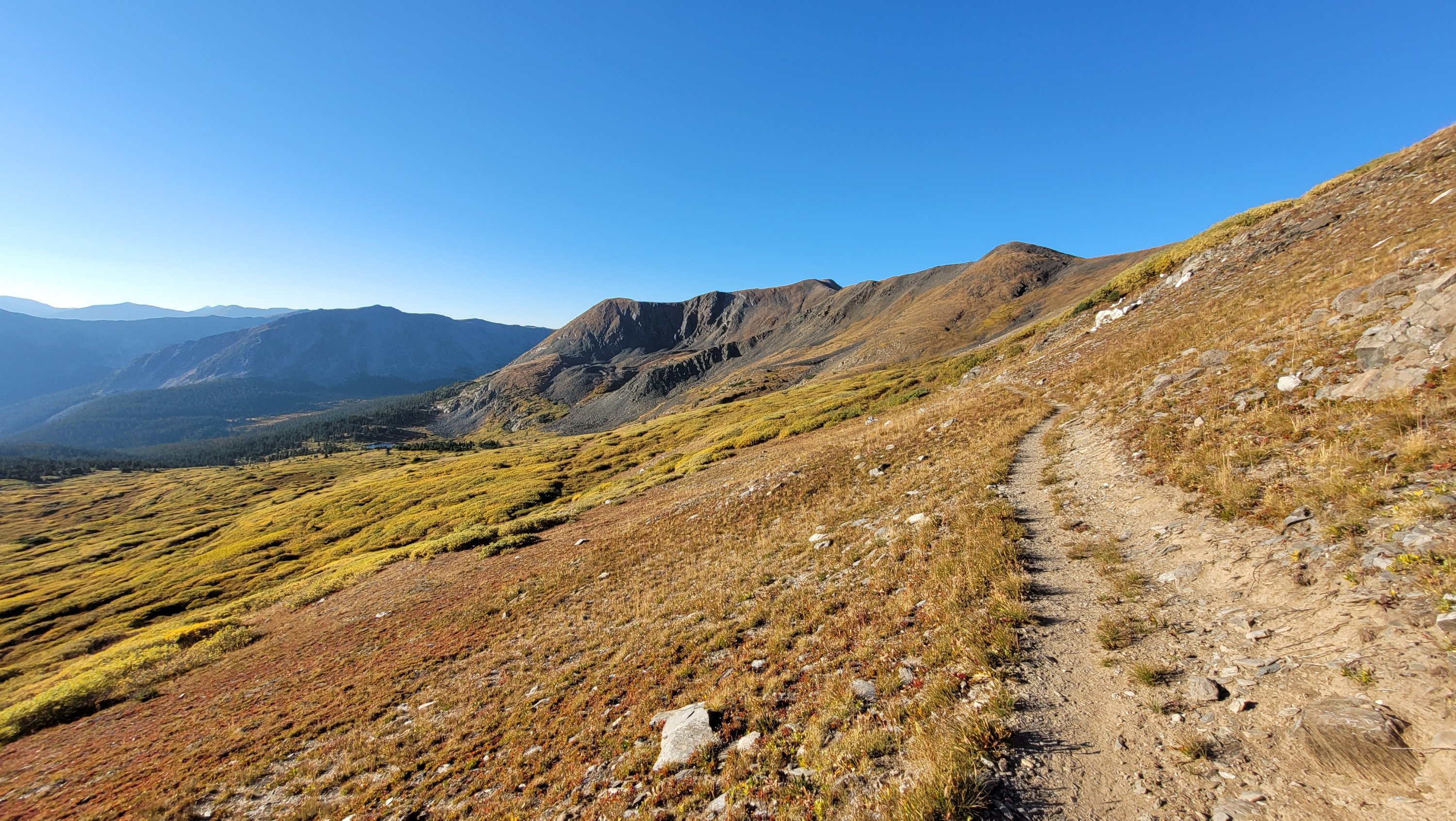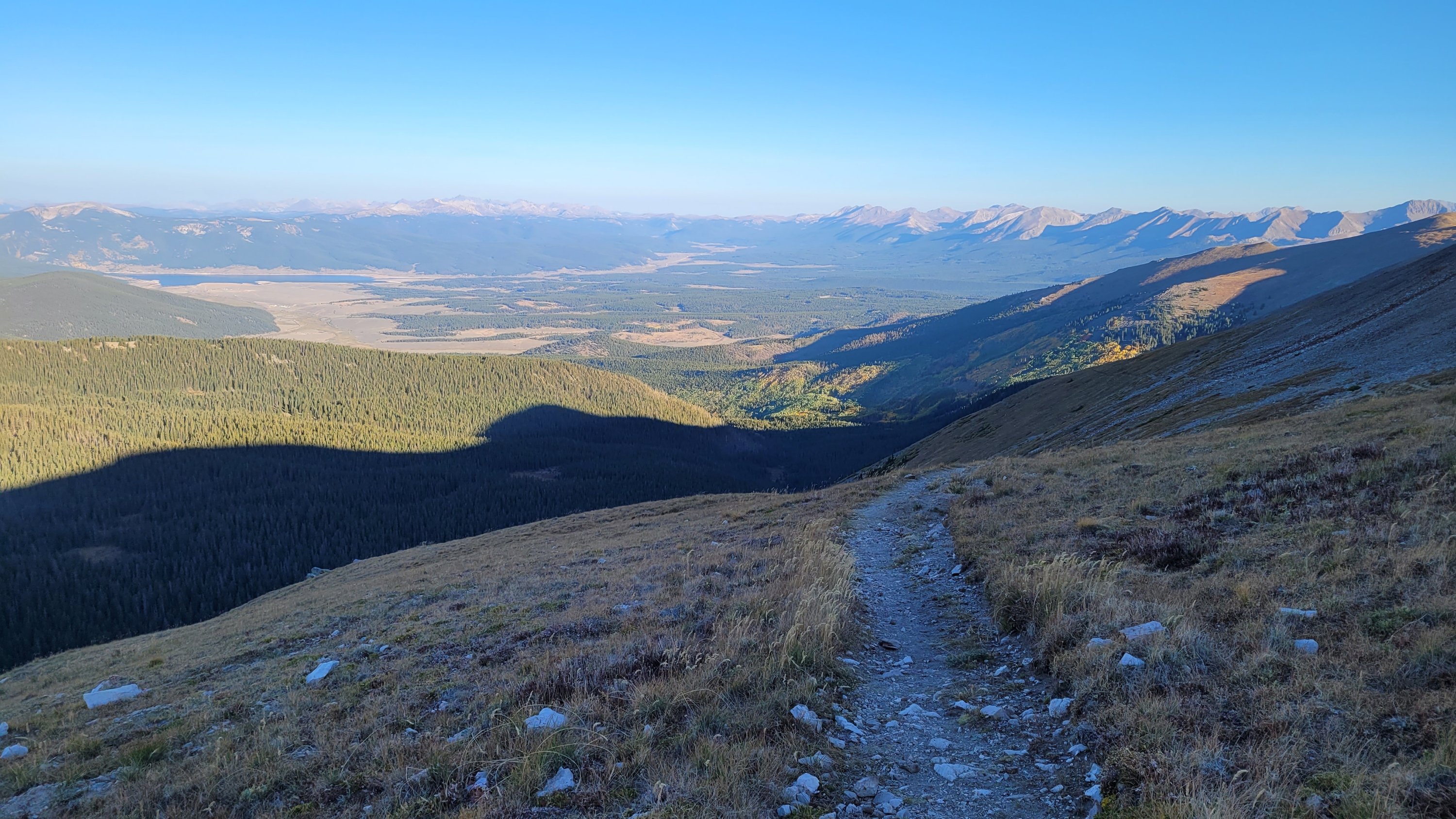 Früh muss ich durch ein eiskaltes Tal und dann fast 1000m auf Hope pass hoch. Die Herbst Farben sind der Hammer. Von dort geht’s nur noch bergab bis Twin Lakes. Hier gönne ich mir ein Abendessen und werde von einem Trail Angel eingeladen in ihrem Haus zu übernachten. Inclusive Blick auf Mt Elbert, den höchsten Berg von Colorado, direkt von der Terrasse.