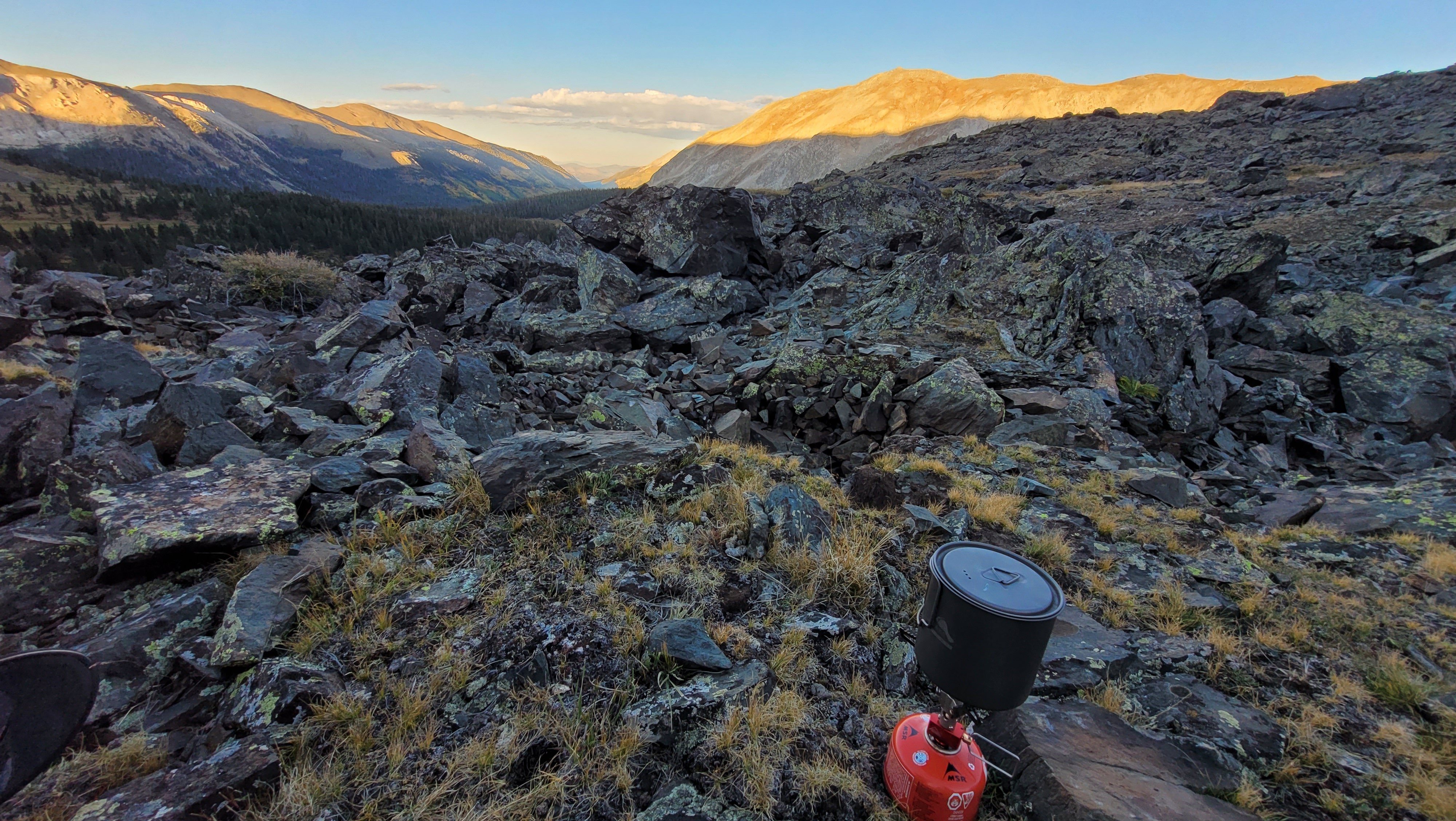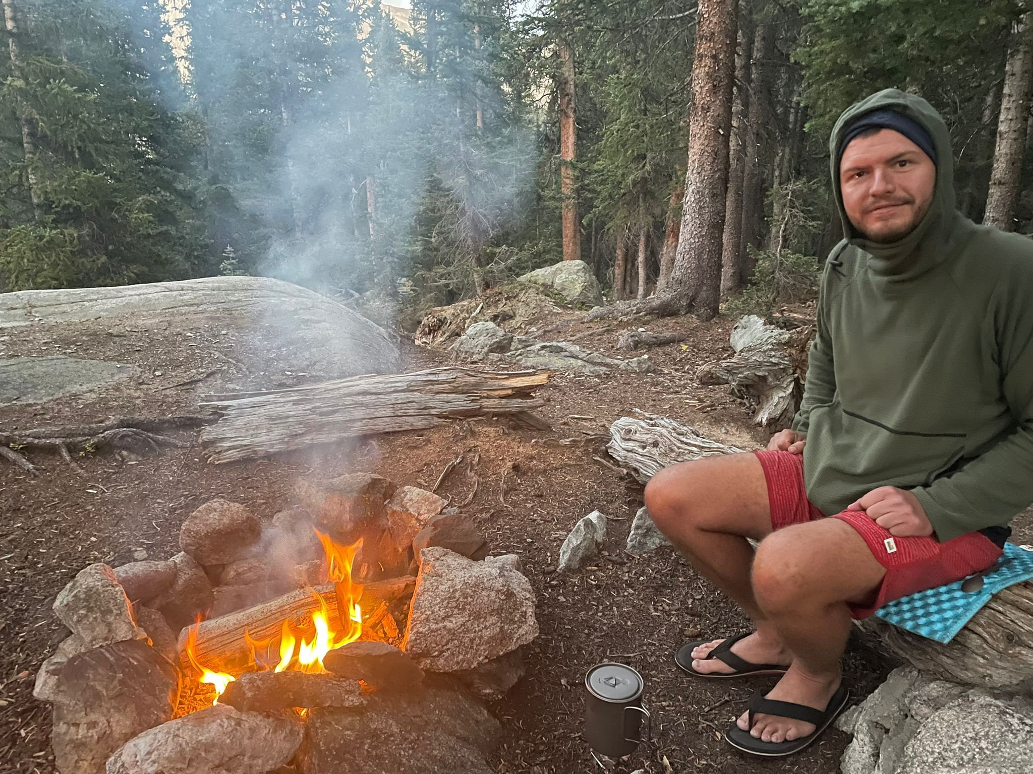 Nachdem ich früh in knapp 4000m Empfang hatte hab ich kurz zuhause angerufen. Der restliche Tag ging dann ewig lang über Bergrücken, zur Entspannung in ein Tal und gegen Abend habe ich entschieden noch Lake Ann Pass zu überwinden. Wieder knapp 2000 Höhenmeter heute. Da es dunkel ist als ich ankomme gibt’s ein Feuer.