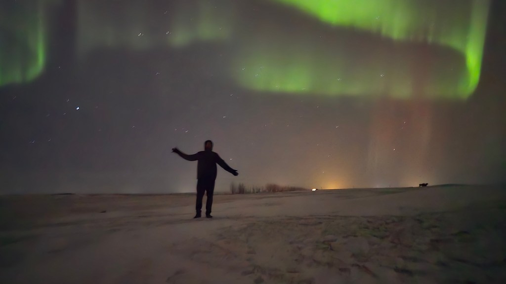 Pünktlich am Silvesterabend hatten wir auch noch Polarlichter, die man mit bloßem Auge sehen konnte. Wahnsinn!